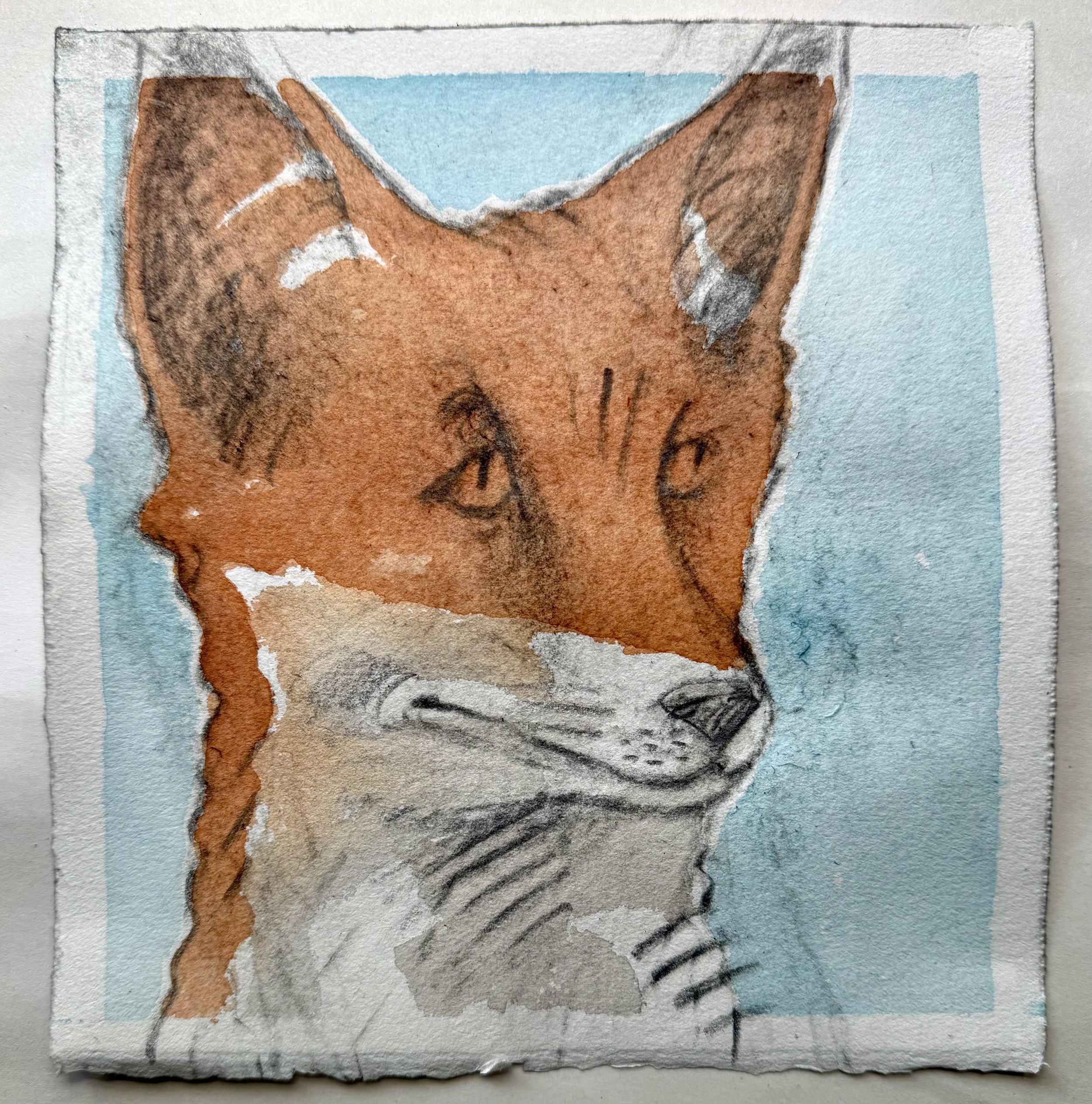 Fox, 2025, 8"x7", graphite, watercolor, paper