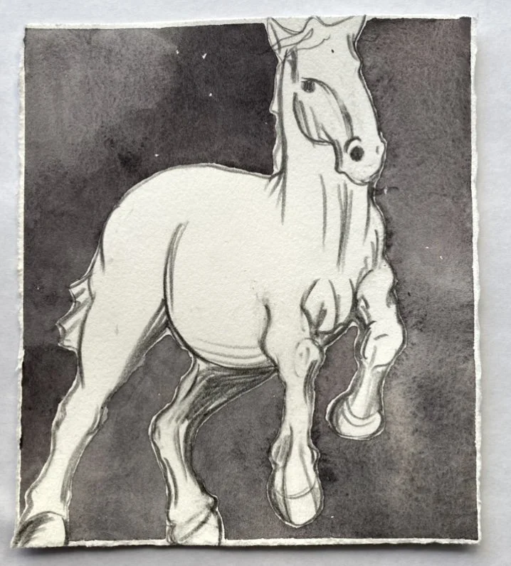 White Horse, 2021, 9" X 10", watercolor, graphite, paper