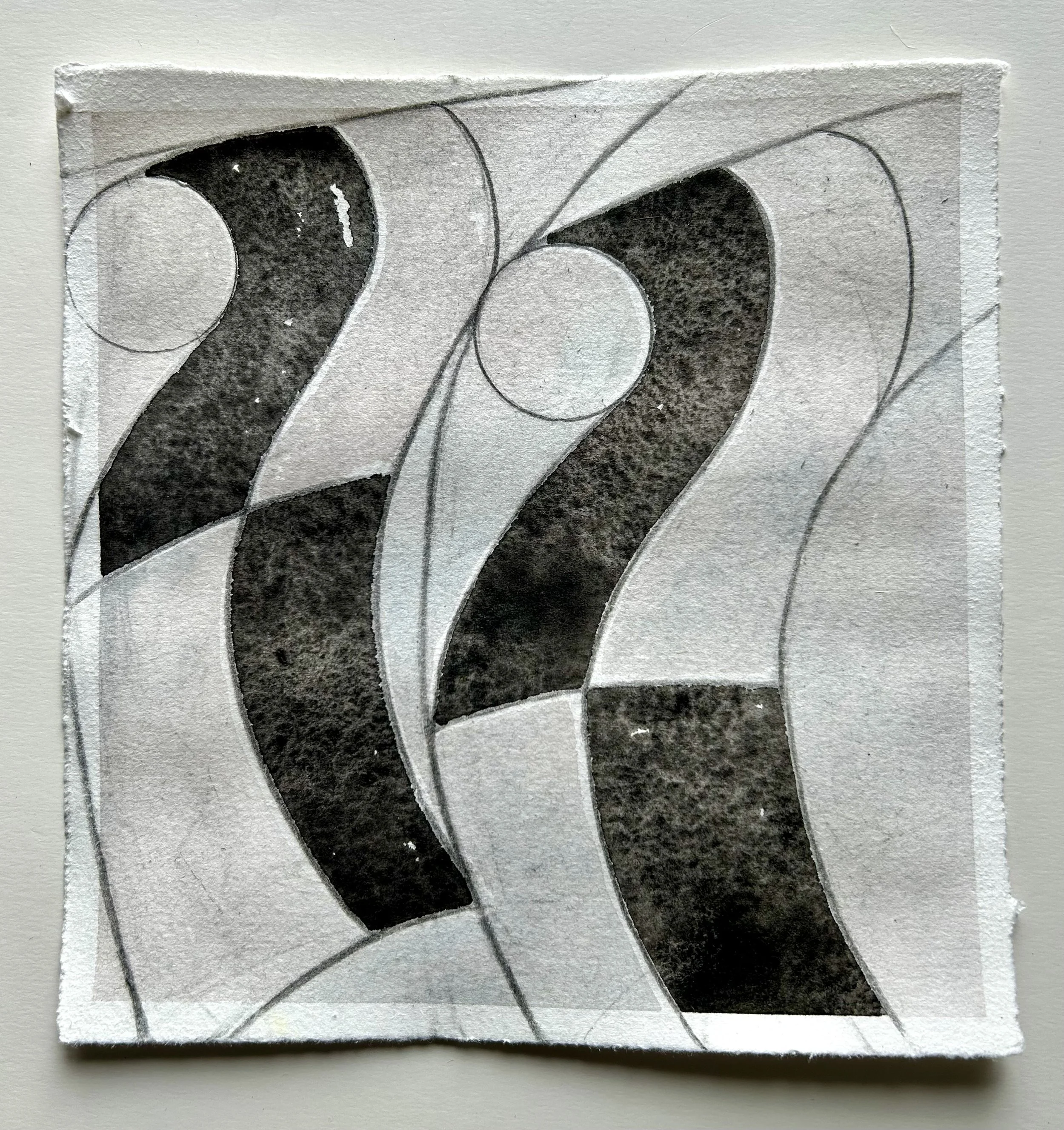 Messages, 2024, 8" X 8", graphite, watercolor, paper