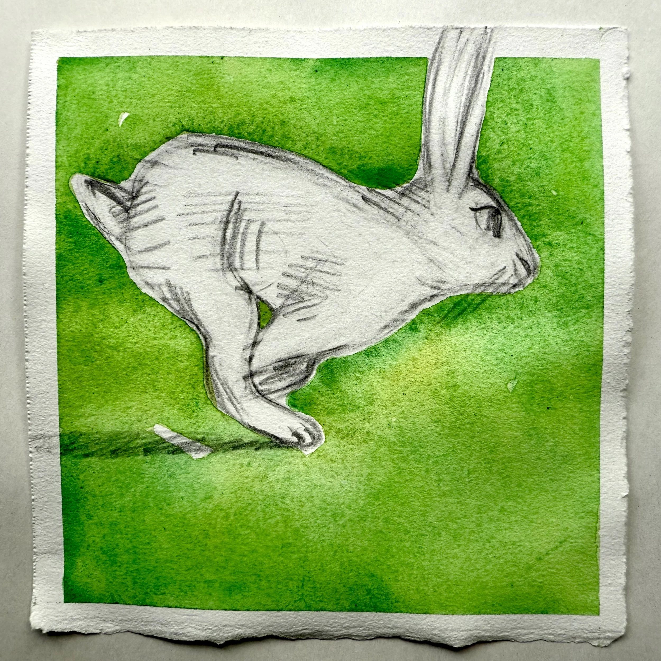 Rabbit (running), 2025, 8"x7", graphite, watercolor, paper