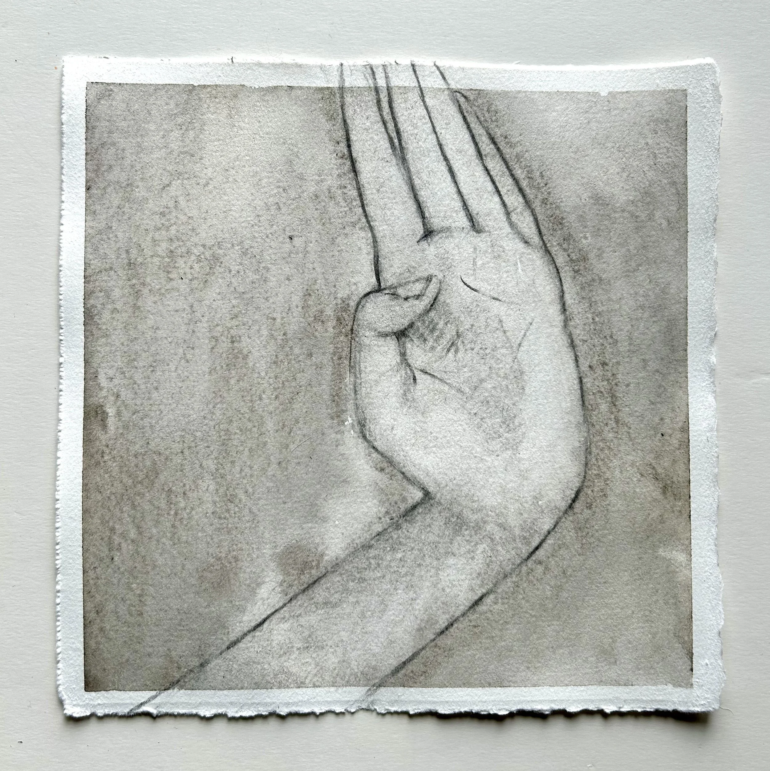 Message, 2024, 8" X 8", graphite, watercolor, paper