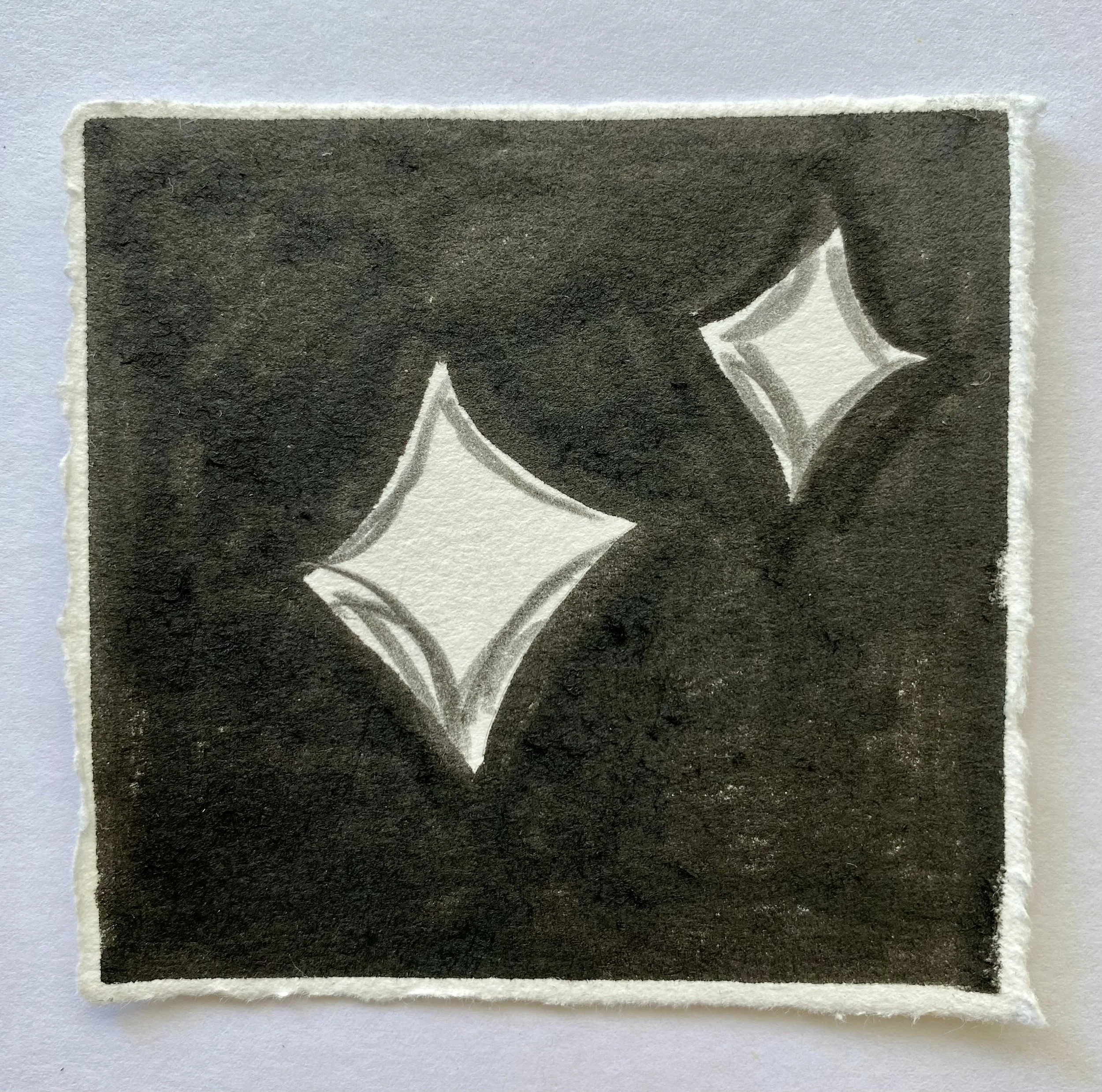 Two Stars, 2020, 3" X 3", ink, graphite, paper