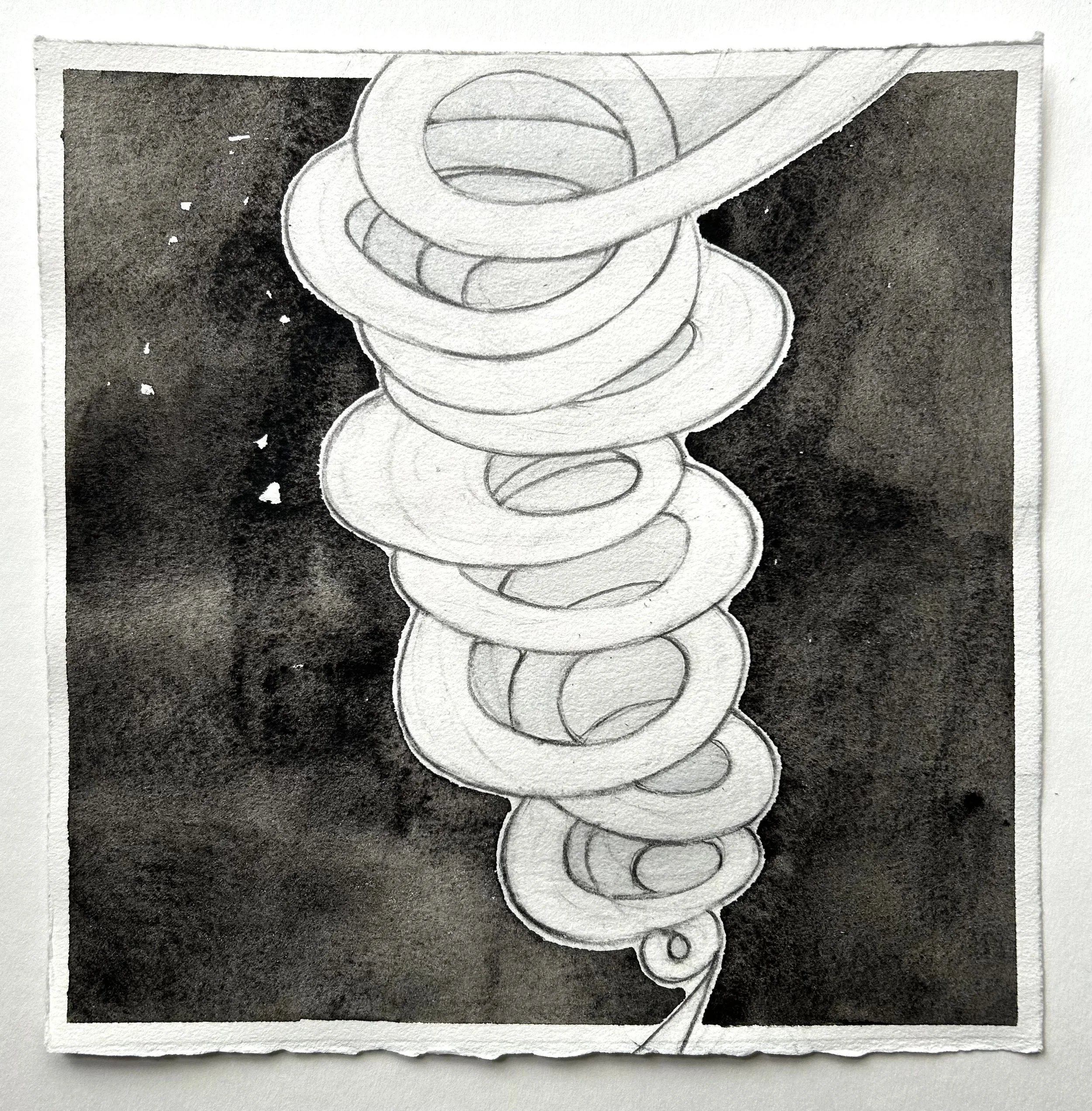 Hurricane (Spiral), 2024, 9" X 9" watercolor, graphite, paper