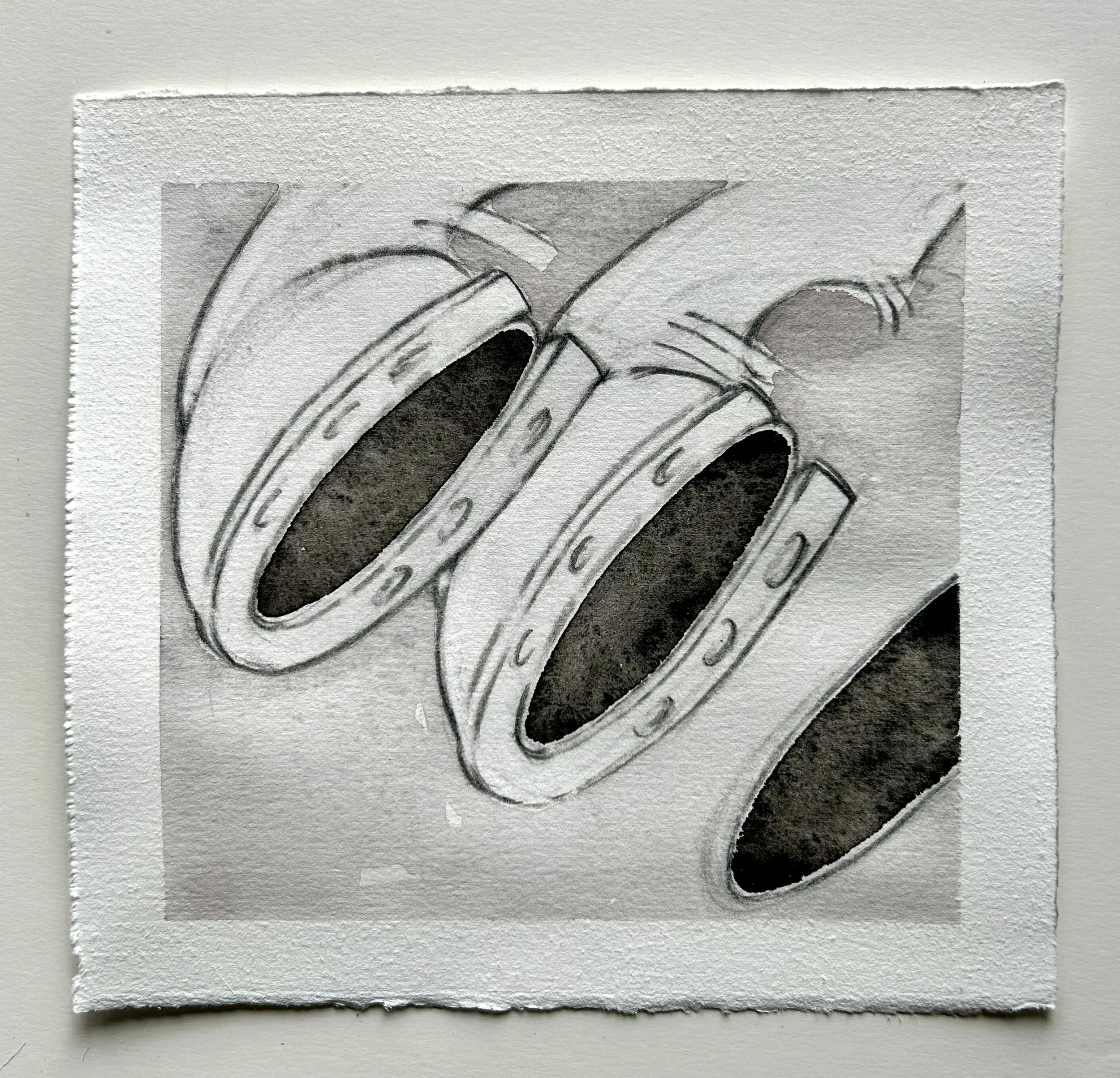 Horseshoes, 2023, 7" x 7", watercolor, graphite, paper