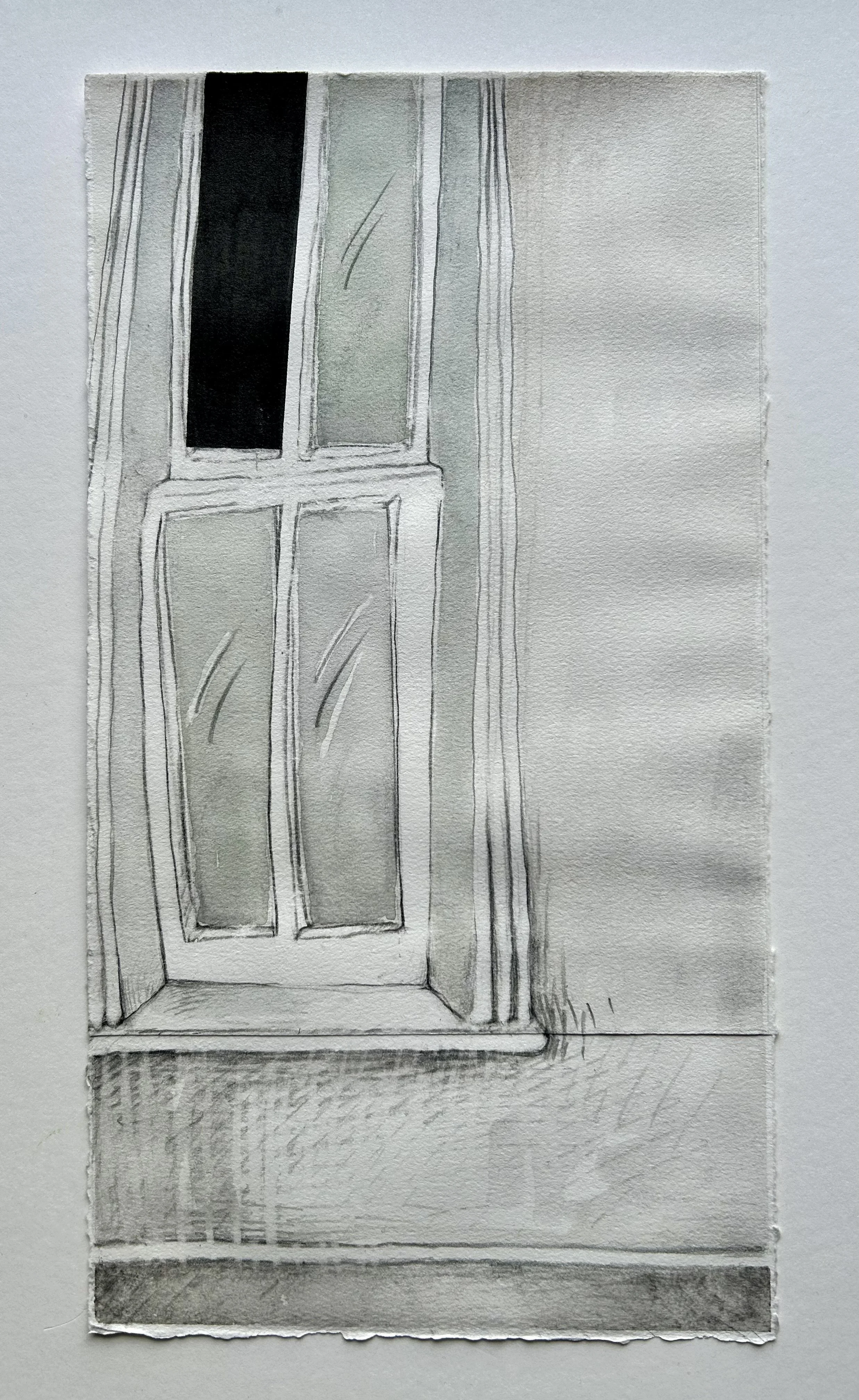 Rain and Window, 2023, 7" X 8", watercolor, graphite, paper