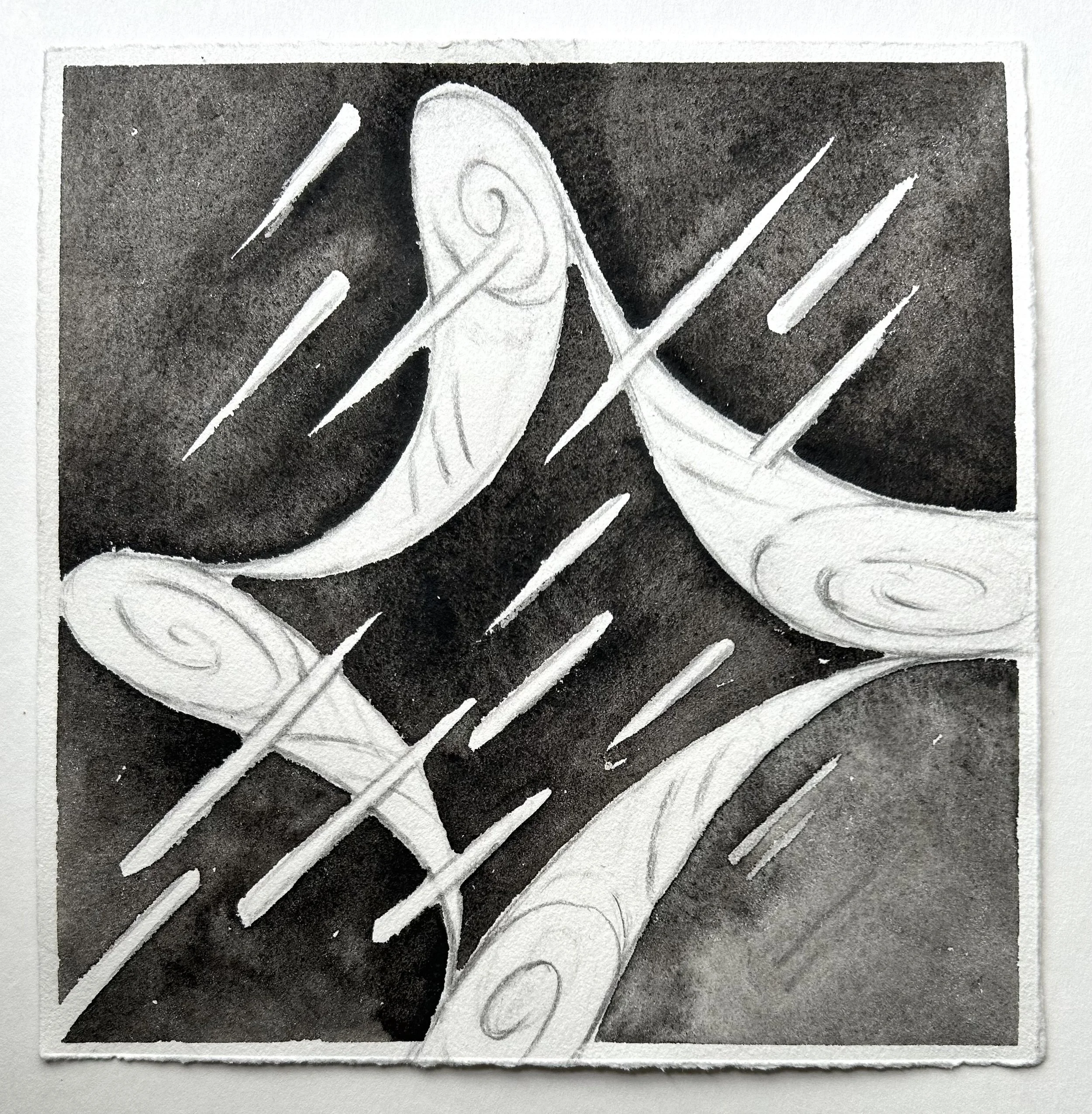 Hurricane (Black), 2023, 9"X 9", watercolor, graphite, paper