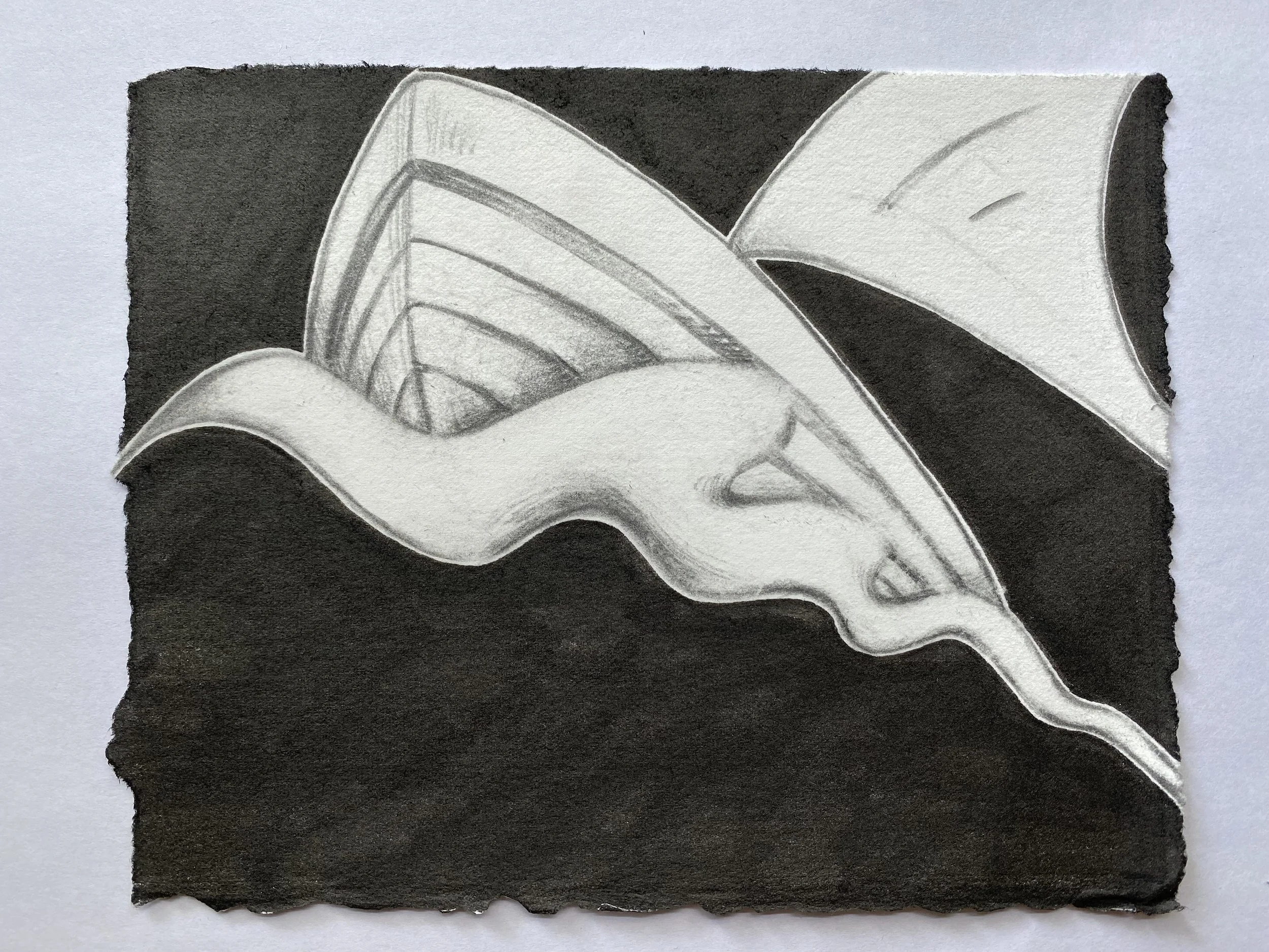 Winged, 2024, 13"x 8", graphite, watercolor, paper